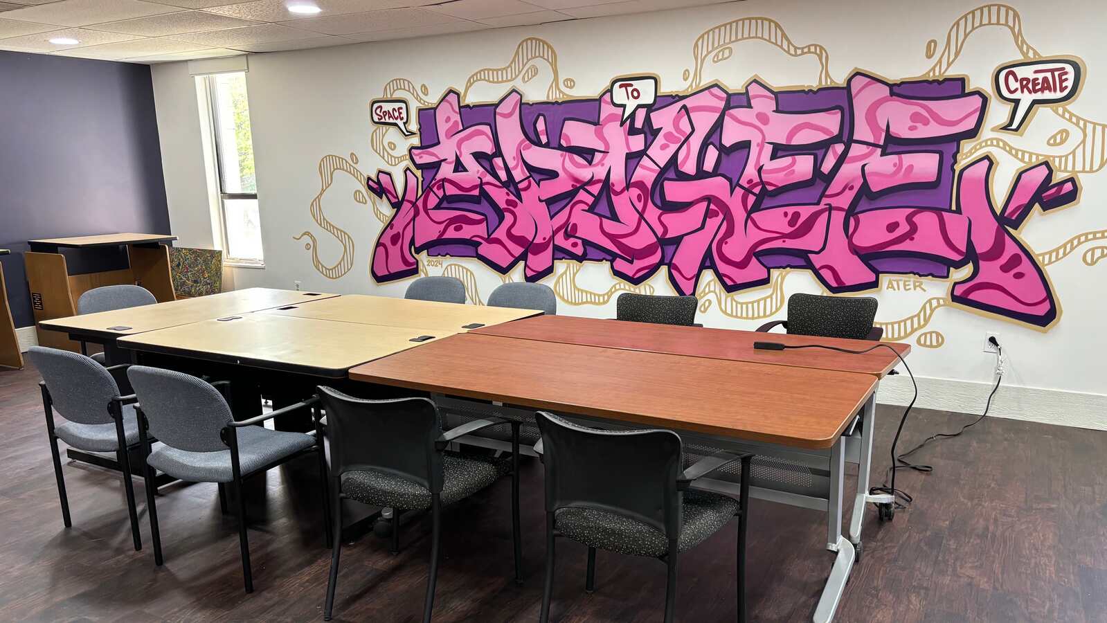 A shared warehouse studio adjacent to Campus A, where creatives have space to work on larger scale projects, like murals, installations that require high ceilings, or most things experimental.